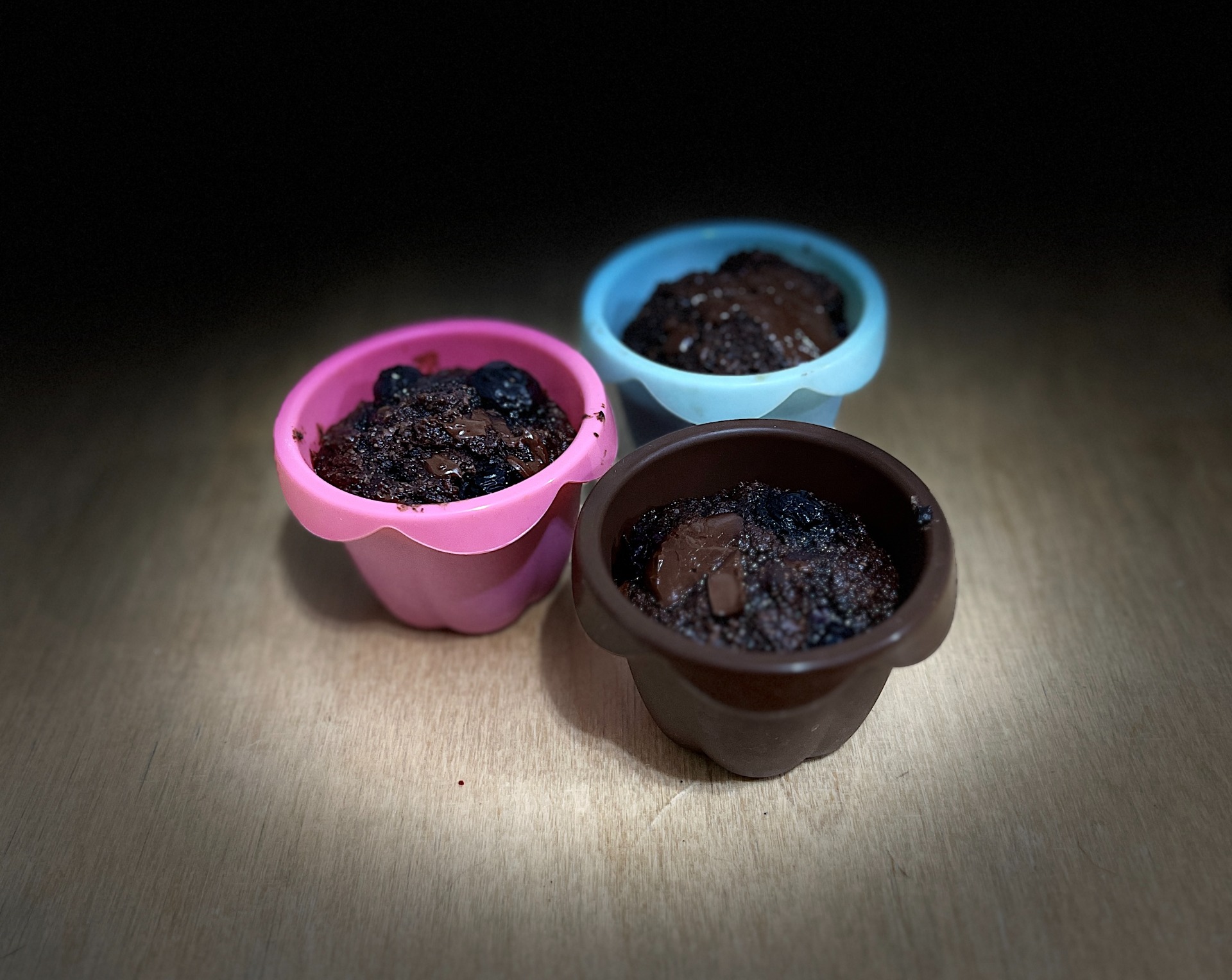 Smícháme suché suroviny a v další míse smícháme ty "mokré", následně vše spojíme v hladké těsto. Nakonec přidáme nasekanou čokoládu a borůvky. Těsto dáme do formiček a pečeme na 175 C cca 20 minut.